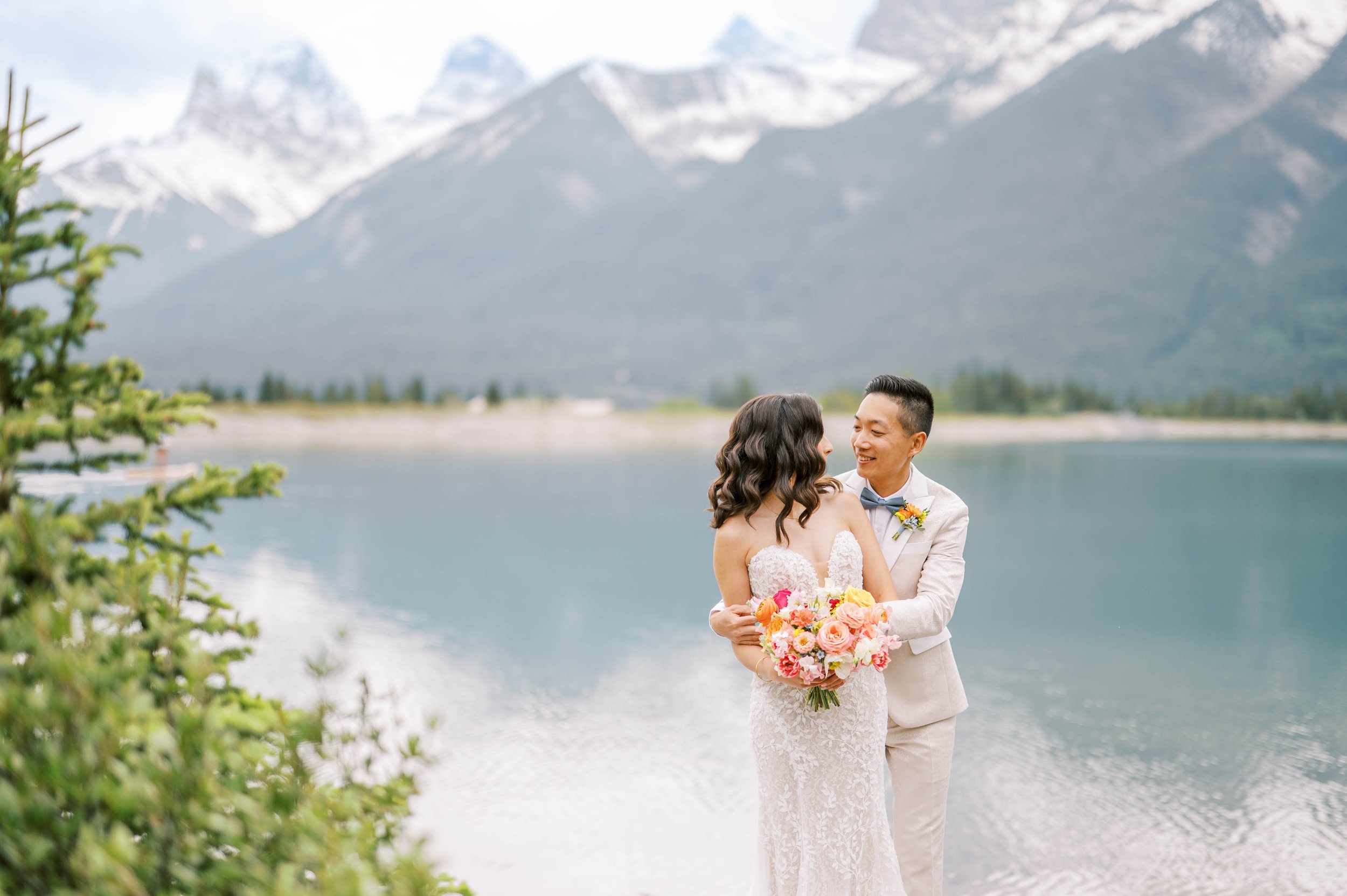 A&P were married at the stunning Silvertip Resort in Canmore, surrounded by the natural beauty of the mountains. They envisioned a wedding that was clean, romantic, and elegant — yet full of fun and energy. Their color palette was inspired by the warm hues of a sunset over the Silvertip gazebo, blending natural tones with a touch of cultural vibrancy. Every design detail was intentional, from the impactful floral ceremony arch to the way those same blooms were repurposed into a breathtaking head table arrangement by Little Daisy Florals. Bringing their vision to life was such a joy — a true reflection of their love, warmth, and the unforgettable atmosphere they created for their guests.